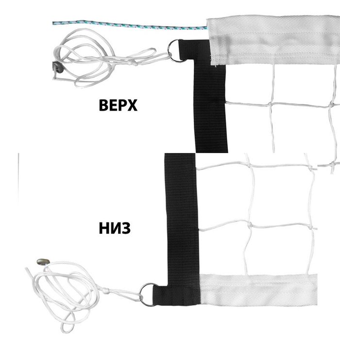 Сетка волейбольная FS-V-№7 профессионального уровня. Кевларовый трос длиной 12 метров, три натяжителя с каждой стороны. Верхняя лента шириной 7 см, боковые и нижние ленты шириной 5 см. Нить диаметром 3 мм сделана из полипропилена.