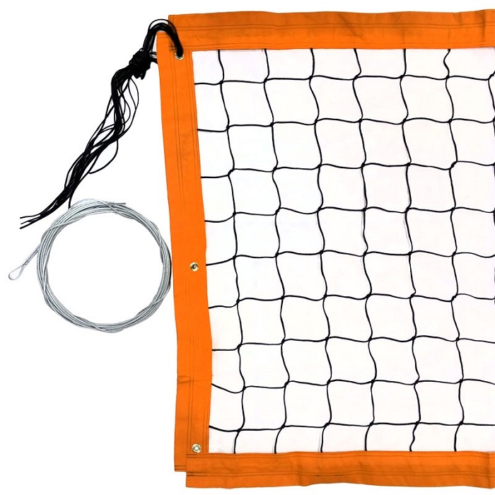 Верхняя и нижняя ограничительные, а также боковые ленты имеют ширину 7,5 см и выполнены из полиэстера красного цвета. Полотно сетки из специального светостабилизированного, водоотталкивающего пропилена черного цвета (толщина нити 3 мм, ячейка 10см*10см). Применение данных материалов позволяет использовать сетку на открытых площадках при игре в агрессивных погодных условиях (яркий свет, дождь, высокая влажность, низкая температура воздуха) без угрозы растяжения и провисания полотна сетки, и разрушения структуры материала. Для равномерного натяжения сетки в боковых лентах предусмотрены по 3 полипропиленовых шнура с каждой стороны.