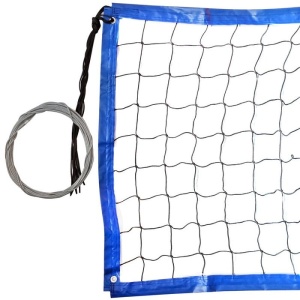 Верхняя и нижняя ограничительные, а также боковые ленты имеют ширину 5 см и выполнены из синтетической кожи (армированный поливинилхлорид) синего цвета. Полотно сетки из специального светостабилизированного, водоотталкивающего пропилена черного цвета (толщина нити 3 мм, ячейка 10см*10см). Применение данных материалов позволяет использовать сетку на открытых площадках при игре в агрессивных погодных условиях (яркий свет, дождь, высокая влажность, низкая температура воздуха) без угрозы растяжения и провисания полотна сетки, и разрушения структуры материала. Для равномерного натяжения сетки в боковых лентах предусмотрены по 2 полипропиленовых шнура с каждой стороны.
