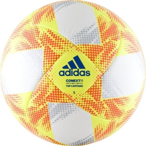 Любительский мяч Adidas CONEXT 19 TOP CAPITANO. Покрышка из матовой синтетической кожи (термополиуретан) с одним подкладочным слоем синтетической ткани. Машинная сшивка, бутиловая камера, армированная синтетической нитью, бутиловый ниппель.