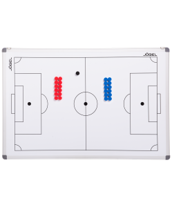 Магнитно-маркерная тактическая доска Jögel для футбола. Позволит тренеру разработать схему и тактику игры. Есть металлические петли для крепления к стене. В комплекте: пронумерованные фишки разных цветов, маркер, губка для стирания.