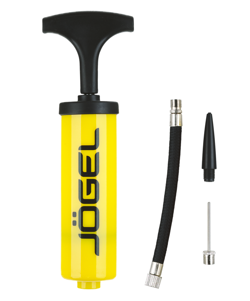 Универсальный ручной насос желтого цвета с Т-образной ручкой от бренда Jögel. Эффективен при накачке мячей любых типов. Благодаря небольшим габаритам и удобной упаковке, его легко брать собой в поездку. В комплект входит гибкий съемный шланг под автомобильный ниппель Schrader, стандартная игла с диаметром резьбы 7 мм и насадка для фитбола. Данная модель не подходит для накачивания велопокрышек.