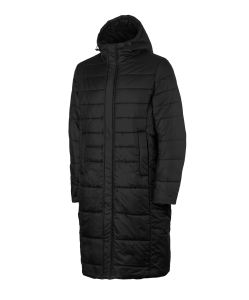 Утепленное пальто из полиэстера с лазерным напылением. Отличительной особенностью является наличие двух шлиц сзади, которые придают функциональность модели и дарят свободу движения. Передняя молния 2-Way выполнена с внешней ветрозащитной планкой на кнопках. Капюшон и низ куртки регулируются по ширине и высоте эластичными шнурами и фиксаторами. В боковых рельефах расположены два кармана на молнии. Низ рукава имеет внутренний ветрозащитный манжет. Логотип Jogel матового нанесения.