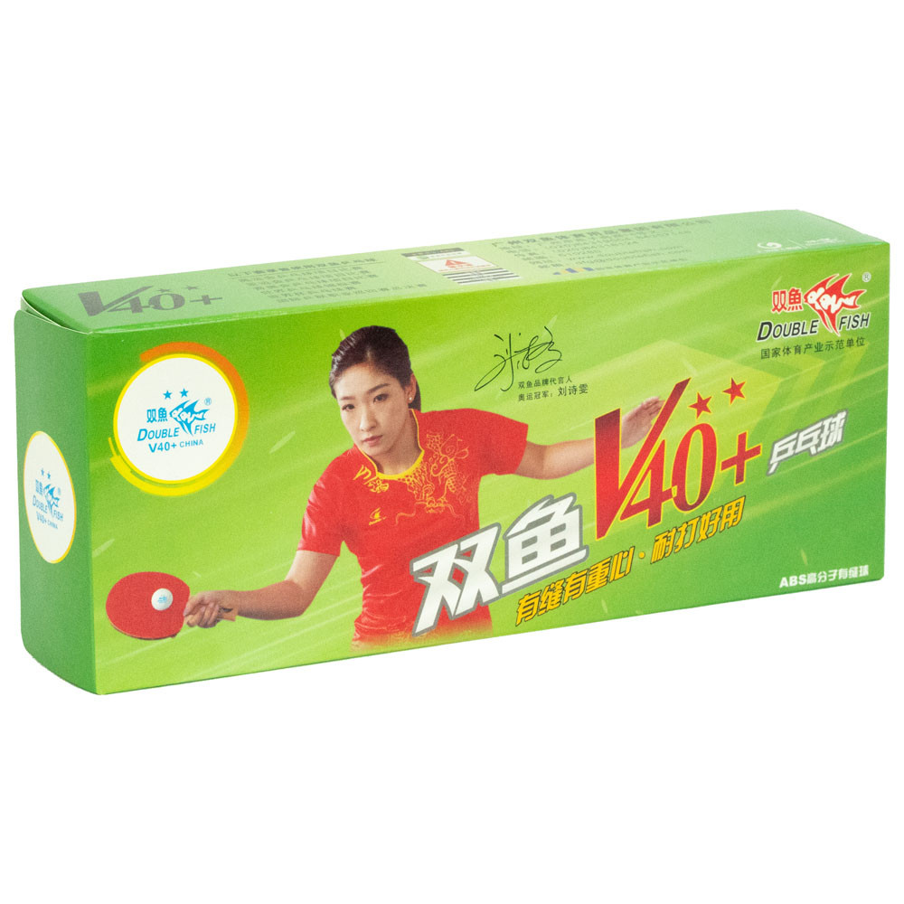 Мяч для наст. тенниса Double Fish 2**, арт. V40+2, диам. V40+мм,плаcтик,упак.10 шт,белый