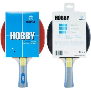 Ракетка для любителей и начинающих Hobby. Сочетание основания толщиной 6 мм и накладок TORRES 100 с мягкой губкой толщиной 1,8 мм создают ракетку со сбалансированными показателями вращения, скорости и контроля, идеально подходящую для  приобретения навыков игры в настольный теннис.
