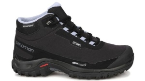 Salomon SHELTER CS WP L40473100 женские утепленные ботинки отличный выбор для повседневных прогулок в городских условиях, путешествий по бездорожью и горам. Верх сделан при помощи бесшовной технологии  из материала Softshell с добавление вставок из текстильных материалов. Утеплитель ClimaTherm состоящий из смеси трех материалов (позволяет носить ботинки до -18 градусов) защищает ваши ноги от холода, а мембрана Climashield от влаги. Эргономичная стелька поглощает вибрации, и обеспечивает необходимый уровень амортизации при длительной ходьбе, что позволяет ногам не уставать во время длительных прогулок. Благодаря агрессивному протектору из износостойкой резины Winter Contagrip обеспечивается максимальный эффект сцепления с грунтом, снегом, льдом и грязью.