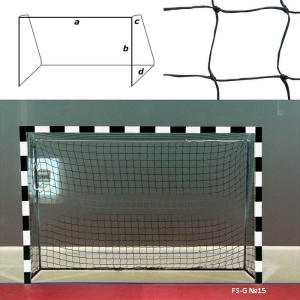 Сетка для гандбола и футзала, по форме ворот, размер a:3.0 b:2.0 c:0.8 d:1.0 м, нить 3,5 мм полипропилен (ПП), ячейка 10*10 см., цвет черный. Кромки сетки обработаны оверлоком. Шнур для крепления в комплекте.