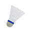 Юбка белого цвета выполнена из пластика (ПВХ). Пластиковая головка (ЭВА) имеет индикаторную ленту синего цвета, что соответствует средней скорости, отлично подойдет для игры в бадминтон при температуре воздуха от 12 до 23 °С. Высота волана составляет 8 см, а диаметр юбки - 7 см.