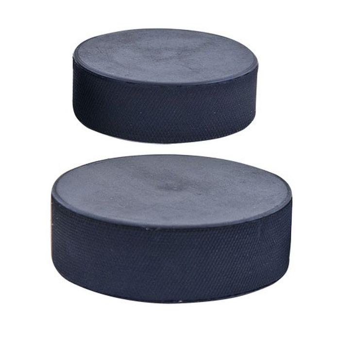 Шайба хоккейная. Параметры шайбы, такие как: твердость, вес, эластичность после отскока, плоскостность, качество поверхности, диаметр, толщина и прочие параметры отвечают международным стандартам и самым строгим требованиям канадско-американской NHL.