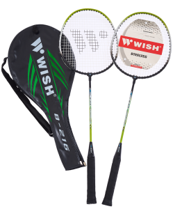 Набор для бадминтона Wish состоит из 2 ракеток овальной формы и специального чехла для хранения, оснащенного удобным ремнем для переноски. Набор ракеток для бадминтона разработан для бадминтонистов-любителей, которым требуется максимально надежная, удобная в игре и маневренная ракетка. Прекрасно подходит для игры в атакующем стиле. В комплект к ракеткам для бадминтона для начинающих идет укороченный чехол 3/4.