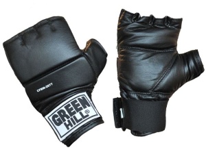 Обрезанные снарядные перчатки Green Hill CFBM-2077-BK (шингарты). Изготовлены из натуральной кожи, ударная поверхность с утолщением. Используются для отработки ударов по боксерскому мешку или специальной подушке. Широкий, эластичный манжет на "липучке".