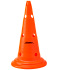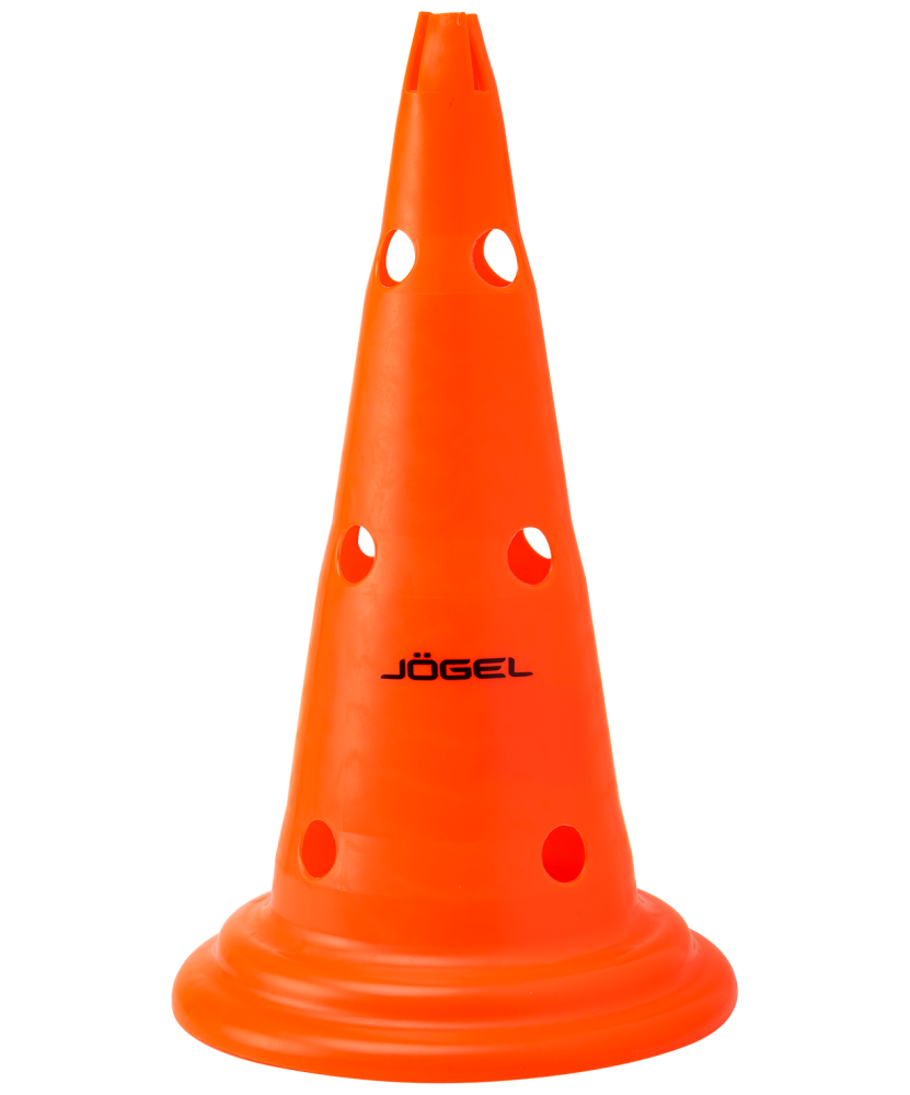 Качественный конус для занятий и тренировок яркой расцветки. Всепогодный, изготовлен из износостойкого пластика.Модель имеет по 3 отверстия с каждой стороны, в которые можно устанавливать шесты Jögel, что делает его мультифункциональным.