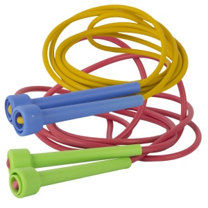Ручки скакалки выполнены из пластика. Длина троса - 320 см, но при необходимости длину можно легко уменьшить.