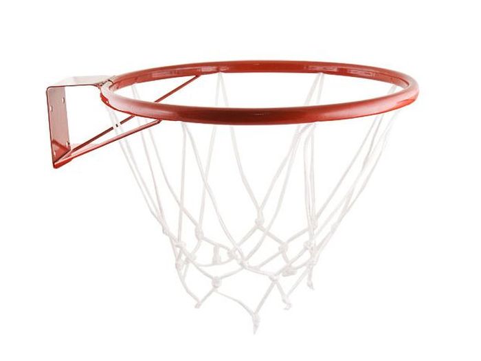 Кольцо баскетбольное №5, диаметр 380 мм, стальная труба диаметром 18 мм, толщина стенки трубы 8 мм, кронштейн из стального листа толщиной 2 мм с 4-мя крепежными отверстиями под саморезы или анкера, сетка в комплекте (белая).
