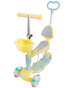 Starlet снабжён съемным детским креслом, которое надежно крепится к основе самоката. Наклонная система поворота очень удобна для детей и способствует развитию координации. В комплект входит специальная съемная ручка управления, комфортно регулируемая по высоте. Яркие цветовые решения понравятся вашему ребенку и всецело займут его внимание.