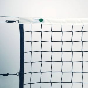 Официальная сетка Федерации волейбола Испании. Произведена по безузловой технологии, ячейка - четырехугольная, стандартная 10х10 см. Нить 4,0 мм полипропилен, стойкий к агрессивным атмосферным воздействиям и с защитой от ультрафиолета. Стандартные размеры: длина 9.50 м, ширина 1.00 м. Верх сетки окантован белой лентой шириной 70 мм из прочного, износостойкого ПВХ, таким же образом обработан и низ и боковые стороны сетки, но лента, в соответствии с правилами, шириной 50 мм. Сетка поставляется со стальным тросом в оболочке из ПВХ длиной 11,70 м. У сетки 6 шнуров для натяжения, по три с каждой стороны, на каждом шнуре пластиковый блок-натяжитель, есть боковые вставки из фибергласовых стержней для идеально ровного натяжения сетки. Цвет черный.