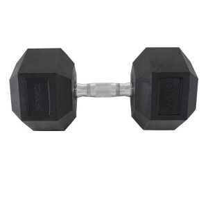 Металлическая ручка с насечками имеет эргономическую форму, что обеспечивает прекрасный захват и предотвращает выскальзывание даже при самых активных тренировках. Литая (не наборная) конструкция обрезиненных дисков-шестигранников, делает снаряд более стабильным. Форма шестигранника обеспечивает хорошую устойчивость на полу, предотвращает перекатывание гантелей, а так же делает возможным и нужным использование этих гантелей как упоров для отжимания.