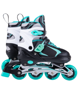 Внешний ботинок создан из противоударного пластика, который позволяет не только защитить ногу от травм, но и способствует отличной фиксации. Благодаря классической шнуровке, пластиковой клипсе и ремешку на липучке стопа идеально зафиксирована и увеличивает маневренность роликовых коньков. Подшипники ABEC-7 придают отличный разгон, а полиуретановые колеса поддерживают необходимую скорость. Алюминиевая подвеска обеспечивает безопасность и долговечность роликов, а регулируемость в пределах 4-х размеров позволяет идеально подобрать модель «по ноге».