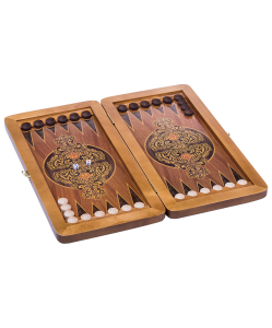 Нарды малые сувенирные кожаные (в чехле) - изысканный подарок для истинных ценителей этой игры! Вставки из кожи, имитирующей кожу крокодила, придают особый статус изделию. В такие нарды не только приятно играть, они - хороший подарочный статусный сувенир.