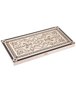 Нарды большие "Орнамент" - яркая цветная модель популярной настольной игры. В набор включено все необходимое: доска из натурального дерева, деревянные удобные шашки и два игральных кубика (зары). Доска и шашки покрыты лаком. На доске нанесен рисунок (шелкография).