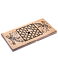 Нарды средние сувенирные выполнены из натурального дерева (и доска, и шашки). Доска обладает красивыми плавными изгибами по контуру. На внешнюю и внутреннюю поверхность игральной доски нанесен рисунок. В комплекте есть все необходимое, включая два игральных кубика (зара).