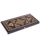 Нарды дорожные "Вьюн" - модель популярной настольной игры. В набор включено все необходимое: доска, деревянные удобные шашки и два игральных кубика (зары). Доска выполнена из фанеры, мореной в черный цвет, рисунок (шелкография) золото, покрытие грунт, лак.