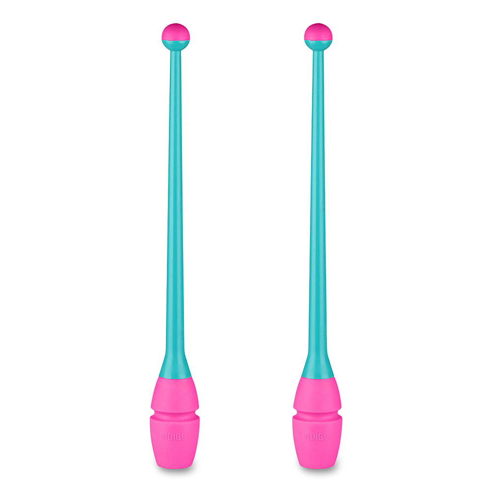 Булавы для художественной гимнастики INDIGO выполнены из двух материалов: ручка - из термопластика, голова булавы - из каучука.