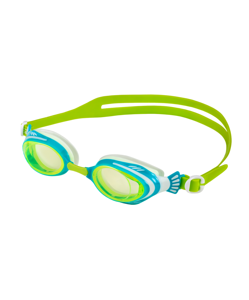 Детские плавательные очки Poseidon от бренда 25DEGREES со сменной носовой перемычкой предусмотрены для детей от 4 до 8 лет. Они прекрасно подойдут для тренировок в бассейне и плавания на открытой воде. Оригинальный дизайн оправы в форме рыбок выгодно отличает очки от аналогов и помогает создать хорошее настроение перед занятиями. Гипоаллергенный силиконовый обтюратор плотно прилегает к коже, предотвращая попадание хлорированной воды в глаза. Материал комфортен к коже и не оставляет следов. Прочные поликарбонатные линзы с УФ-фильтром, защищающим глаза от воздействия ультрафиолетового излучения, с внутренней стороны покрыты антизапотевающим средством (antifog). Мягкий ремешок из высококачественного силикона легко регулируется по длине с помощью боковых фиксаторов. Раздвоенный ремешок обеспечивает идеальную посадку по голове и надежно фиксирует очки на затылке. В комплект входят 3 сменных переносицы из термопластичного полиуретана. Этот современный материал сочетает в себе эластичность натурального каучука и твердость пластиков, поэтому перемычки хорошо держатся на лице и не натирают. Сменные переносицы представлены в разных размерах и позволяют подобрать оптимальный вариант для любого спортсмена.