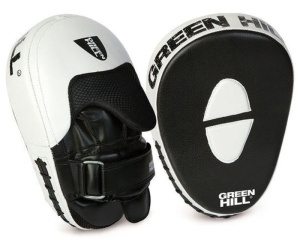 Мини-лапы боксерские Green Hill  для классического бокса предназначены для отработки точности ударов. Выполнены из натуральной кожи и ударопоглощающего наполнителя. В центре ударной поверхности расположена мишень. Эргономичная форма позволяет хорошо фиксировать лапы на руке.