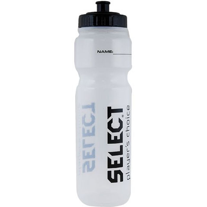 Бутылка для воды Select. Объем 1 л, гипоаллергенный прозрачный пластик, без мерной шкалы, безопасная непроливающаяся крышка, эргономичный корпус с углублениями под пальцы, выемками под крепление на велосипеде или тренажере. Не предназначена для горячего (диапазон температур 0-35С).