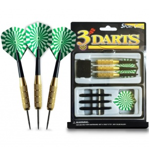 Комплект дротиков для игры в дартс весом 18 гр. Дротики со сальными иглами для классических мишеней. В комплекте наконечники с латунным покрытием - 3шт., ось - 6шт., хвостовое оперение - 3 шт., закрывающийся футляр для хранения.