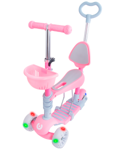 Starlet снабжён съемным детским креслом, которое надежно крепится к основе самоката. Наклонная система поворота очень удобна для детей и способствует развитию координации. В комплект входит специальная съемная ручка управления, комфортно регулируемая по высоте. Яркие цветовые решения понравятся вашему ребенку и всецело займут его внимание.