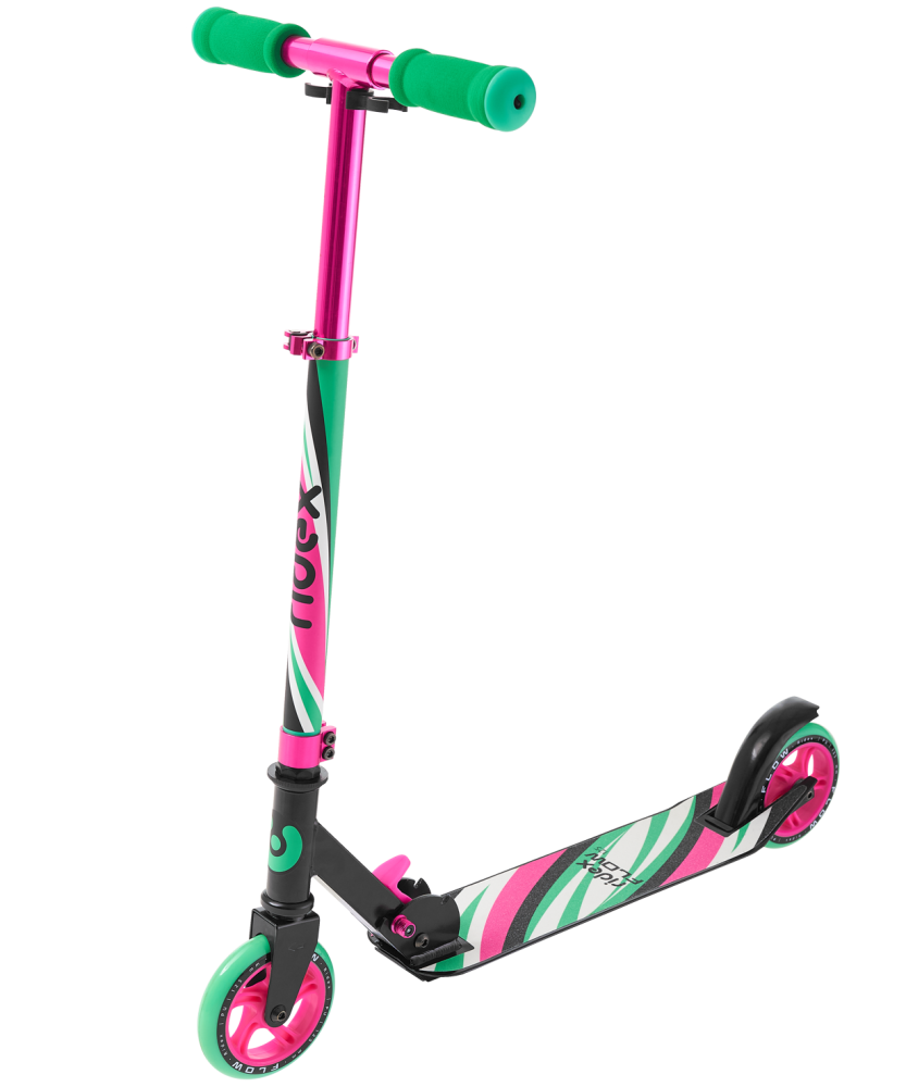 Эффектная модель представлена в ярких цветовых решениях. Вы непременно подберете детский двухколесный самокат на свой вкус! Flow сделан из легкого, но высокопрочного алюминиевого сплава, поэтому его не опасно случайно уронить на себя. Низкая дека позволяет райдеру передвигаться на детском двухколесном самокате в расслабленном режиме, отталкиваясь лишь носком, а складной механизм, удобно расположенный между декой и рулём, повышает уровень комфортного перемещения Flow в сложенном виде. Предпочитаете качество и скорость? Полиуретановые колеса имеют диаметр 125 мм, они быстро домчат куда нужно, несмотря на свой компактный размер. Подшипники ABEC-7 обеспечат двухколесному самокату для ребенка отличный разгон и добавят надежности, а мягкие грипсы из неопрена позволят управлять шустрой моделью с большей цепкостью.