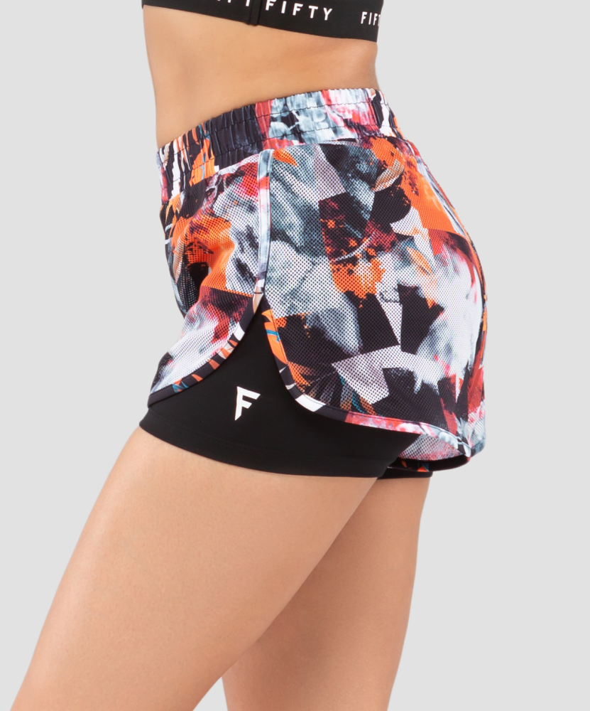 Двойные шорты из линейки Intense для ярких и интенсивных тренировок, в том числе и на улице. Нижние шорты обеспечивают комфортное прилегание, а верхние шорты из принтованной сетки создают невесомый дополнительный слой для стильного рассматриваемого образа.