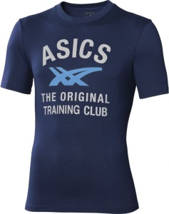 Футболка ASICS SS ASICS STRIPES TEE с коротким рукавом, круглым вырезом и принтом в виде логотипа ASICS из флока.