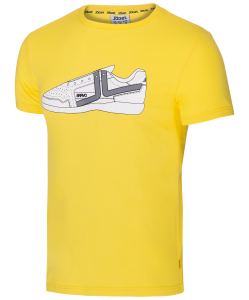 Стильная футболка для занятий спортом и тренировок, имеет оригинальный принт на передней части изделия, выполненного в виде кроссовка. Модель с прямым кроем, короткими рукавами и округлой горловиной, внутри горловина подшита с логотипом бренда.