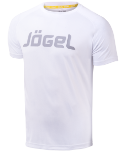 Универсальная футболка для занятий спортом и тренировок. Оригинальный принт - логотип бренда Jögel - расположен на передней части изделия. Модель имеет прямой крой, с короткими рукавами и округлой горловиной, внутри горловины подшита тесьма с логотипом бренда.