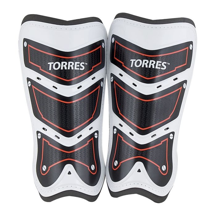 Легкие, прочные тренировочные футбольные щитки Torres Training. Изготовлены из пластика (полипропилен). Без голеностопа. Внутренняя подкладка из синтетической пены (ЭВА). В щитках сделаны отверстия для вентиляции. Щитки крепятся на 2 эластичных застежки на липучке (застегиваются сбоку).
