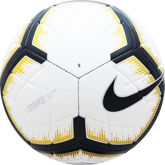 Любительский мяч "NIKE Strike". Покрышка мяча состоит из 12 панелей, выполненных из синтетической кожи (термополиуретан) с микрорельефной текстурой. Дизайн повторяет дизайн офиц. мяча NIKE Merlin и выполнен с помощью нанесения узора 3D-чернилами, которые делают текстуру в некоторых местах более сложной, что влияет на сцепление мяча с обувью.