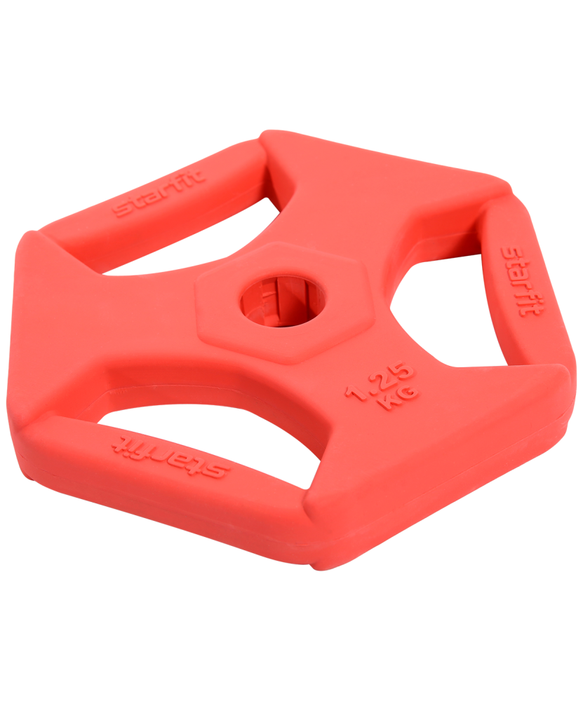 Диск обрезиненный с хватами Starfit BB-205 1,25 кг, d=26 мм, без стальной втулки, красный