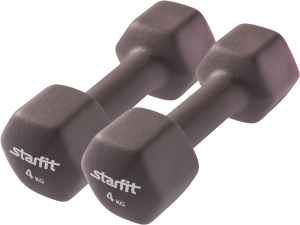 Гантели DB-201 - это гантели с неопреновым покрытием бренда Starfit, обладающие хорошим сцеплением с ладонью. Особенность покрытия – поглощение материалом части влаги с ладоней. Гексагональная форма устраняет проблему перекатывания гантели по полу. Неопреновые гантели приятные на ощупь, не холодные для ладоней и имеют привлекательный внешний вид. Они идеально подходят для дома, так как не царапают пол, минимизируют шум от ударов об пол. Гантель – незаменимый снаряд для тренировки мышечного каркаса человека. Используются в фитнесе, бодибилдинге, функциональном тренинге (в том числе CrossFit), лечебной физкультуре, беге и других спортивных дисциплинах.