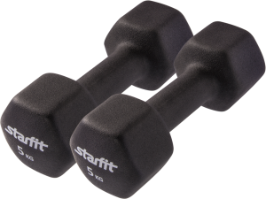 Гантели DB-201 - это гантели с неопреновым покрытием бренда Starfit, обладающие хорошим сцеплением с ладонью. Особенность покрытия – поглощение материалом части влаги с ладоней. Гексагональная форма устраняет проблему перекатывания гантели по полу. Неопреновые гантели приятные на ощупь, не холодные для ладоней и имеют привлекательный внешний вид. Они идеально подходят для дома, так как не царапают пол, минимизируют шум от ударов об пол. Гантель – незаменимый снаряд для тренировки мышечного каркаса человека. Используются в фитнесе, бодибилдинге, функциональном тренинге (в том числе CrossFit), лечебной физкультуре, беге и других спортивных дисциплинах.