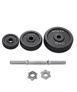 Гантель разборная DB-715 от STARFIT состоит из стального грифа с металлическим хватом и чугунных дисков разного веса. Общий вес легко уменьшить при необходимости, просто сняв диск. DB-715 не только поможет привести себя в форму, этот спортивный инвентарь для фитнеса дома или в зале станет отличным подарком любому спортсмену.