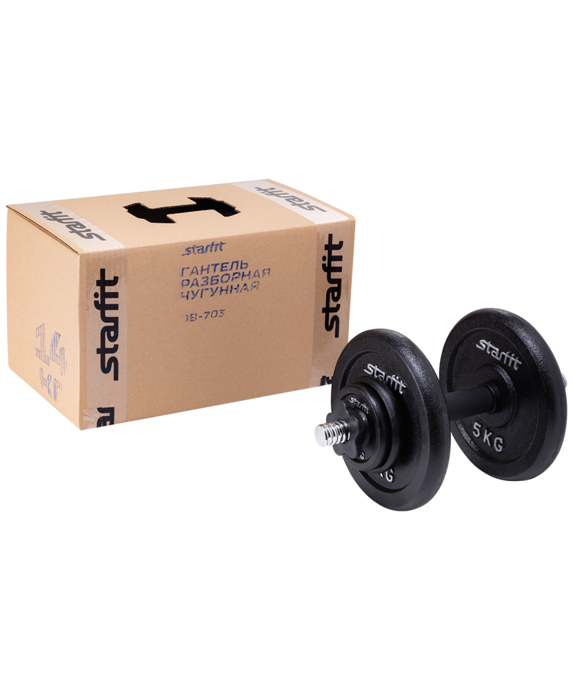 Гантель разборная чугунная DB-703 состоит из стального грифа с пластиковым хватом и чугунных дисков разного веса. Нескользящая поверхность грифа на месте хвата повышает безопасность тренировок. Широкий шаг резьбы позволяет за считанные секунды поменять вес. Гриф комплектуется пластиковыми замками, которые надежно фиксируют диски на грифе.