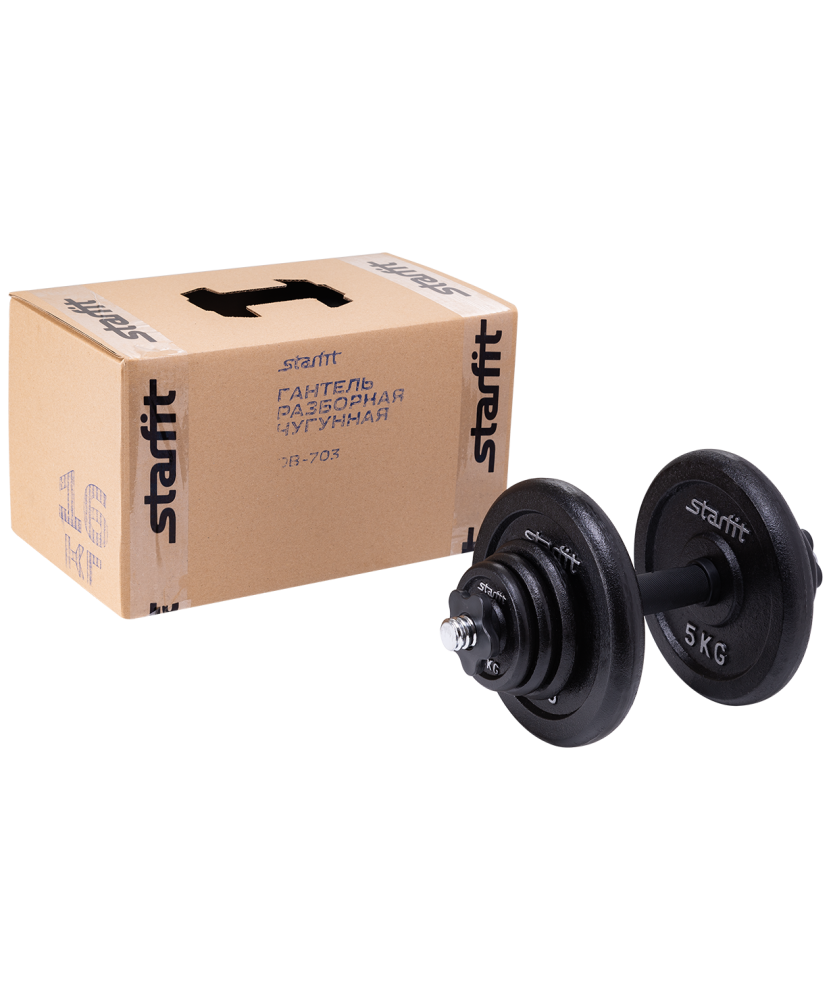 Гантель разборная чугунная DB-703 состоит из стального грифа с пластиковым хватом и чугунных дисков разного веса. Нескользящая поверхность грифа на месте хвата повышает безопасность тренировок. Широкий шаг резьбы позволяет за считанные секунды поменять вес. Гриф комплектуется пластиковыми замками, которые надежно фиксируют диски на грифе.