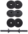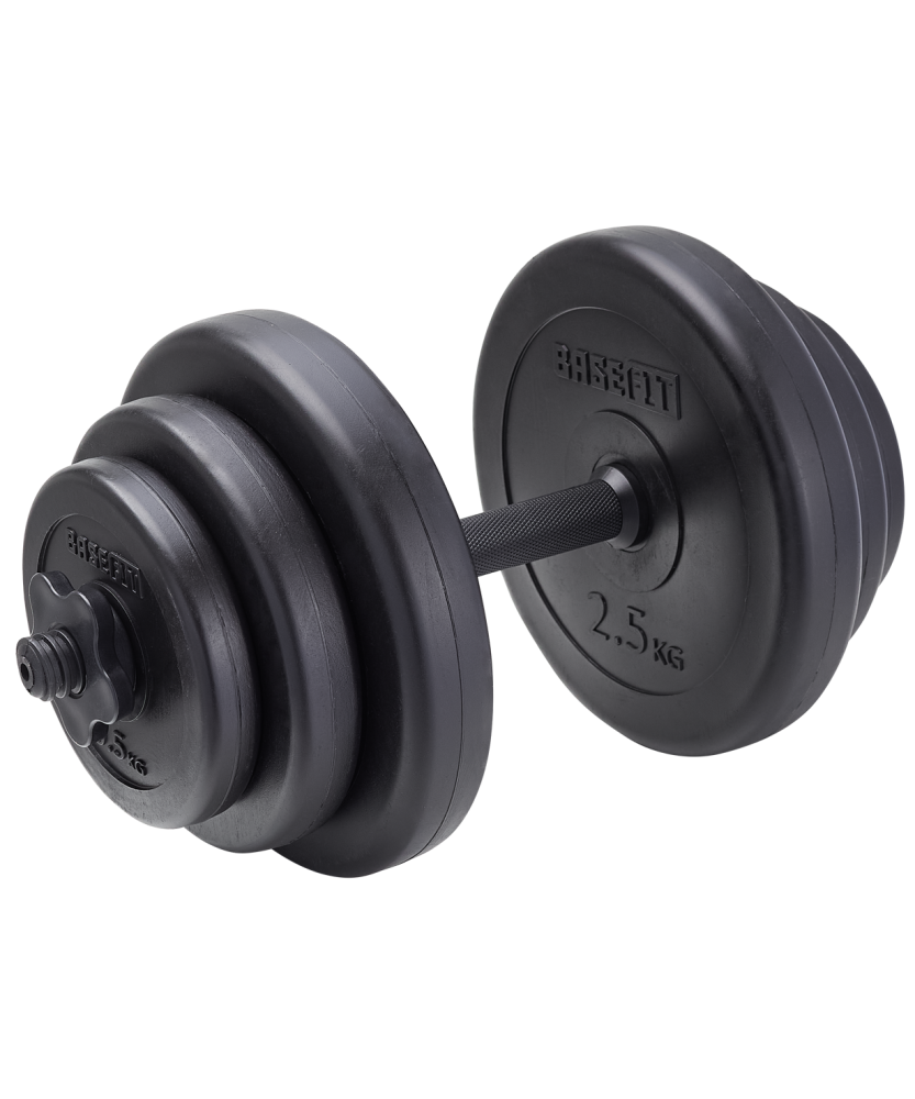 Гантель разборная пластиковая DB-717 состоит из стального грифа с пластиковым покрытием и пластиковых дисков разного веса. Общий вес сборной гантели составляет 9 кг. Снаряд удобно держать в руке, а нескользящая рифленая поверхность грифа на месте хвата повышает безопасность тренировок. Диски покрыты ABS-пластиком. Этот материал не подвержен коррозии, диски с таким покрытием считаются одними из самых прочных и долговечных. Поменять вес не составит труда: широкий шаг резьбы позволяет за считанные секунды добавить или снять блин, а надежные пластиковые замки, которые идут в комплекте, надежно фиксируют диски на месте.