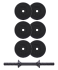 Гантель разборная пластиковая DB-717 состоит из стального грифа с пластиковым покрытием и пластиковых дисков разного веса. Общий вес сборной гантели составляет 15,5 кг. Снаряд удобно держать в руке, а нескользящая рифленая поверхность грифа на месте хвата повышает безопасность тренировок. Диски покрыты ABS-пластиком. Этот материал не подвержен коррозии, диски с таким покрытием считаются одними из самых прочных и долговечных. Поменять вес не составит труда: широкий шаг резьбы позволяет за считанные секунды добавить или снять блин, а надежные пластиковые замки, которые идут в комплекте, надежно фиксируют диски на месте.