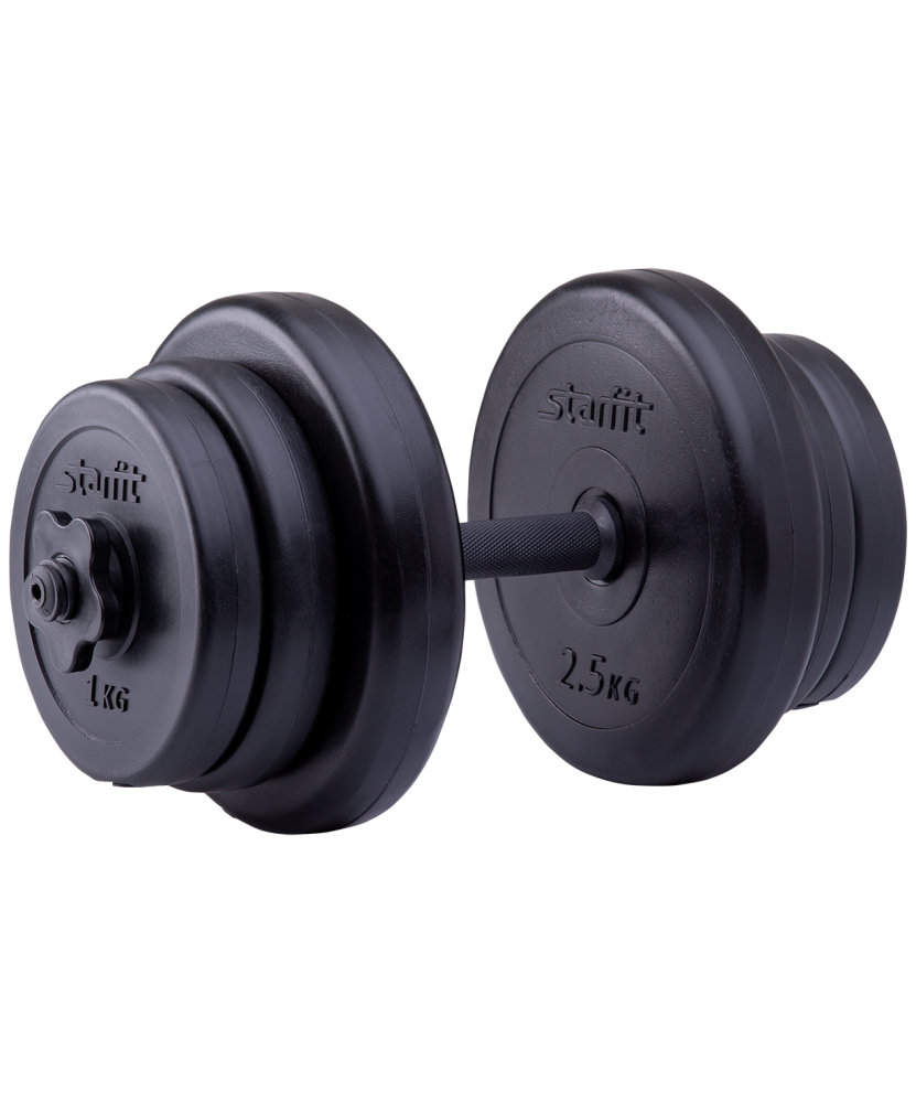 Гантель разборная пластиковая DB-701 состоит из стального грифа с пластиковым покрытием и восьми дисков разного веса. Гантель удобно держать в руке. Нескользящая поверхность грифа на месте хвата повышает безопасность тренировок. Широкий шаг резьбы позволяет за считанные секунды поменять вес. Гриф комплектуется пластиковыми замками, которые надежно фиксируют диски на месте.
