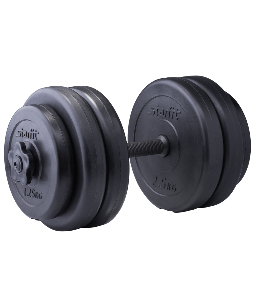 Гантель разборная пластиковая DB-701 состоит из стального грифа с пластиковым покрытием и шести дисков разного веса. Гантель удобно держать в руке. Нескользящая поверхность грифа на месте хвата повышает безопасность тренировок. Широкий шаг резьбы позволяет за считанные секунды поменять вес. Гриф комплектуется пластиковыми замками, которые надежно фиксируют диски на месте.