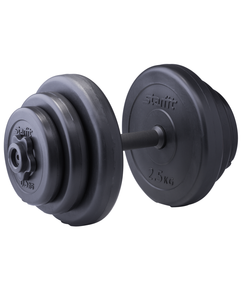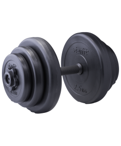 Гантель разборная пластиковая DB-701 состоит из стального грифа с пластиковым покрытием и шести дисков разного веса. Гантель удобно держать в руке. Нескользящая поверхность грифа на месте хвата повышает безопасность тренировок. Широкий шаг резьбы позволяет за считанные секунды поменять вес. Гриф комплектуется пластиковыми замками, которые надежно фиксируют диски на месте.